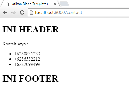 Maka saat kita panggil url contact yang akan tampil seperti berikut :