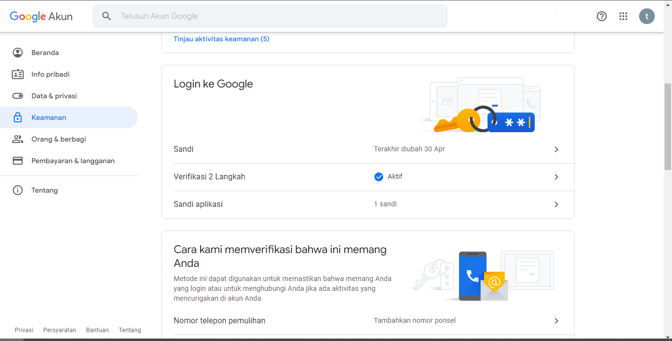 - Silahkan ke pengaturan keamanan google atau klik link ini https://myaccount.google.com/security